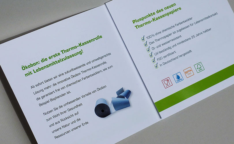 ÖKOBON THERMOPAPIER I Gestaltung Logo – Erscheinungsbild | Kundenbroschüre